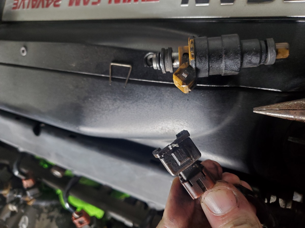 Here is a picture of the pin and the connecter after they are separated from the injector.