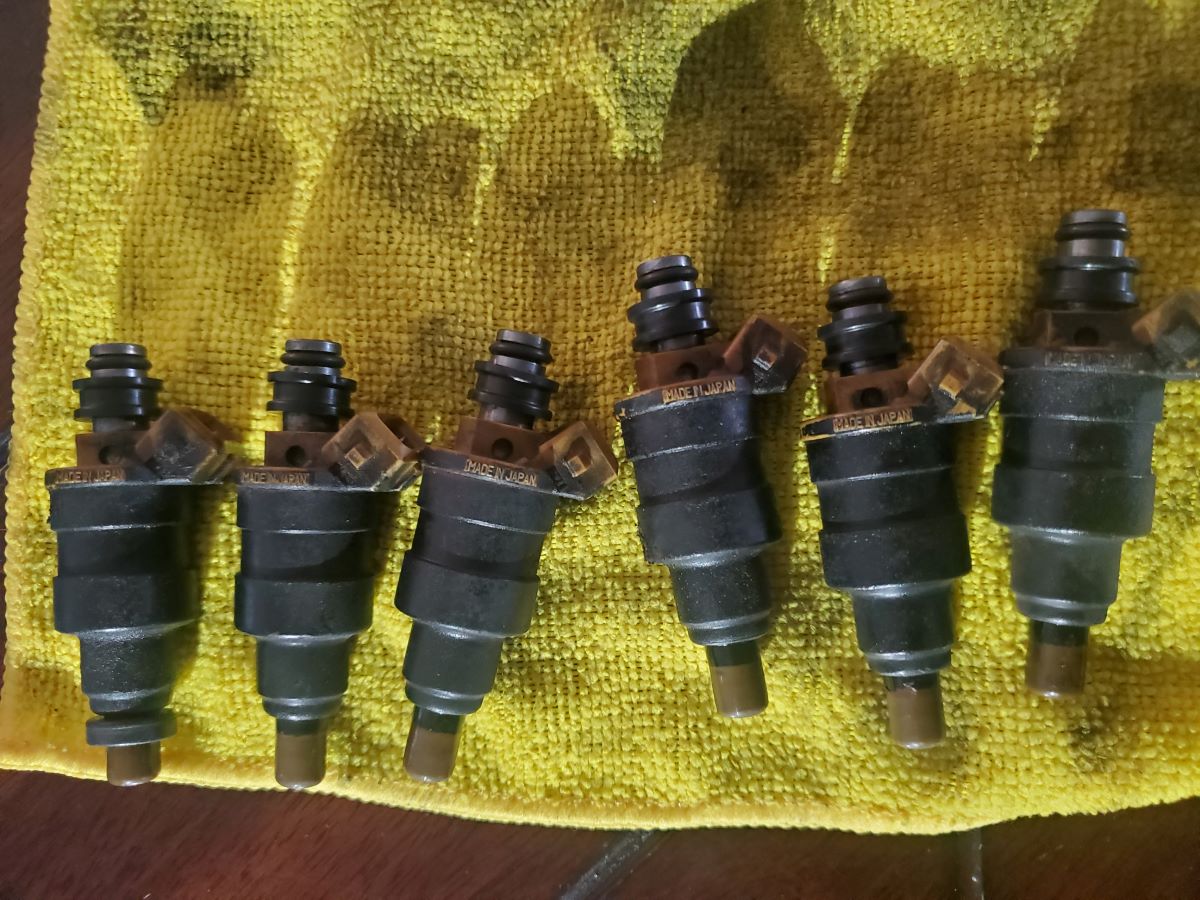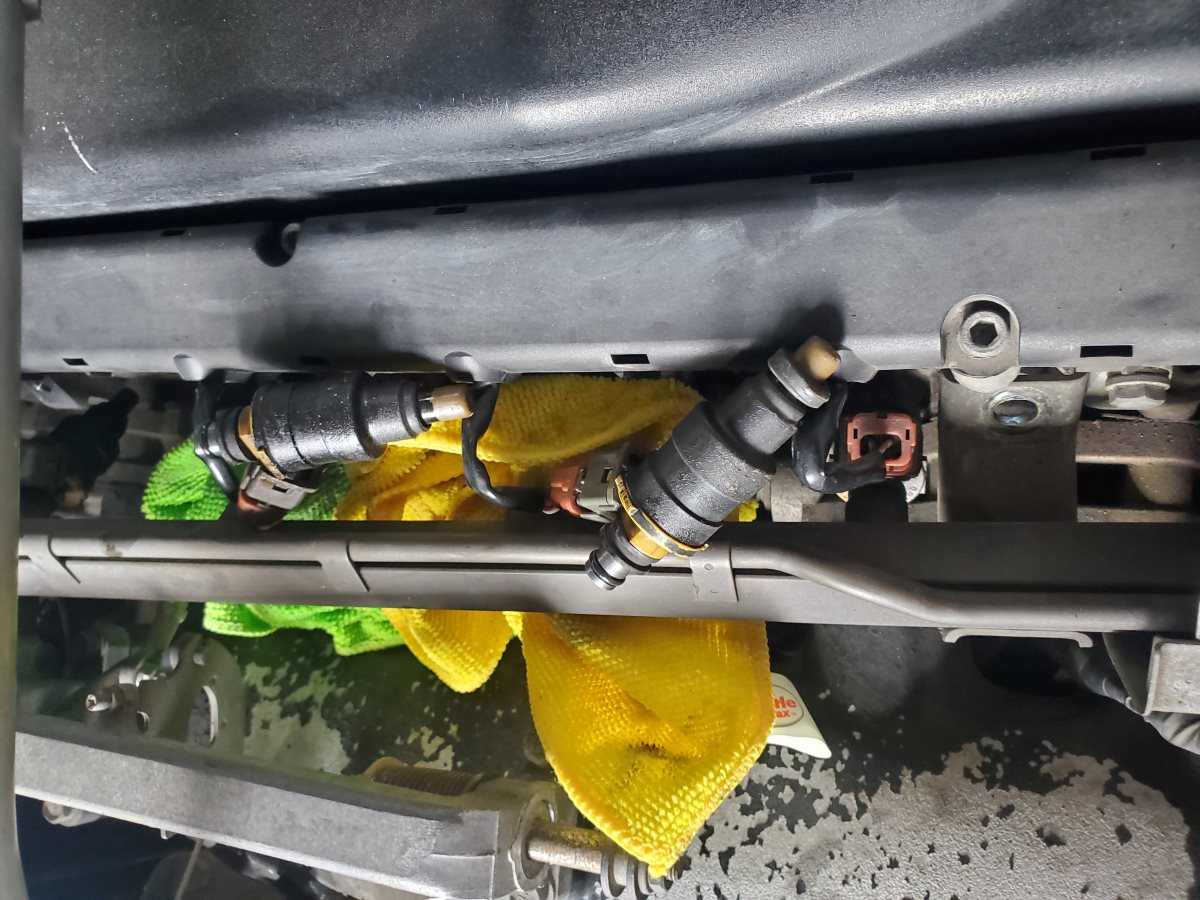 After removing all the pins, I placed some rags down around each injector. When you remove the injectors form the fuel rail, there will be some leakage.