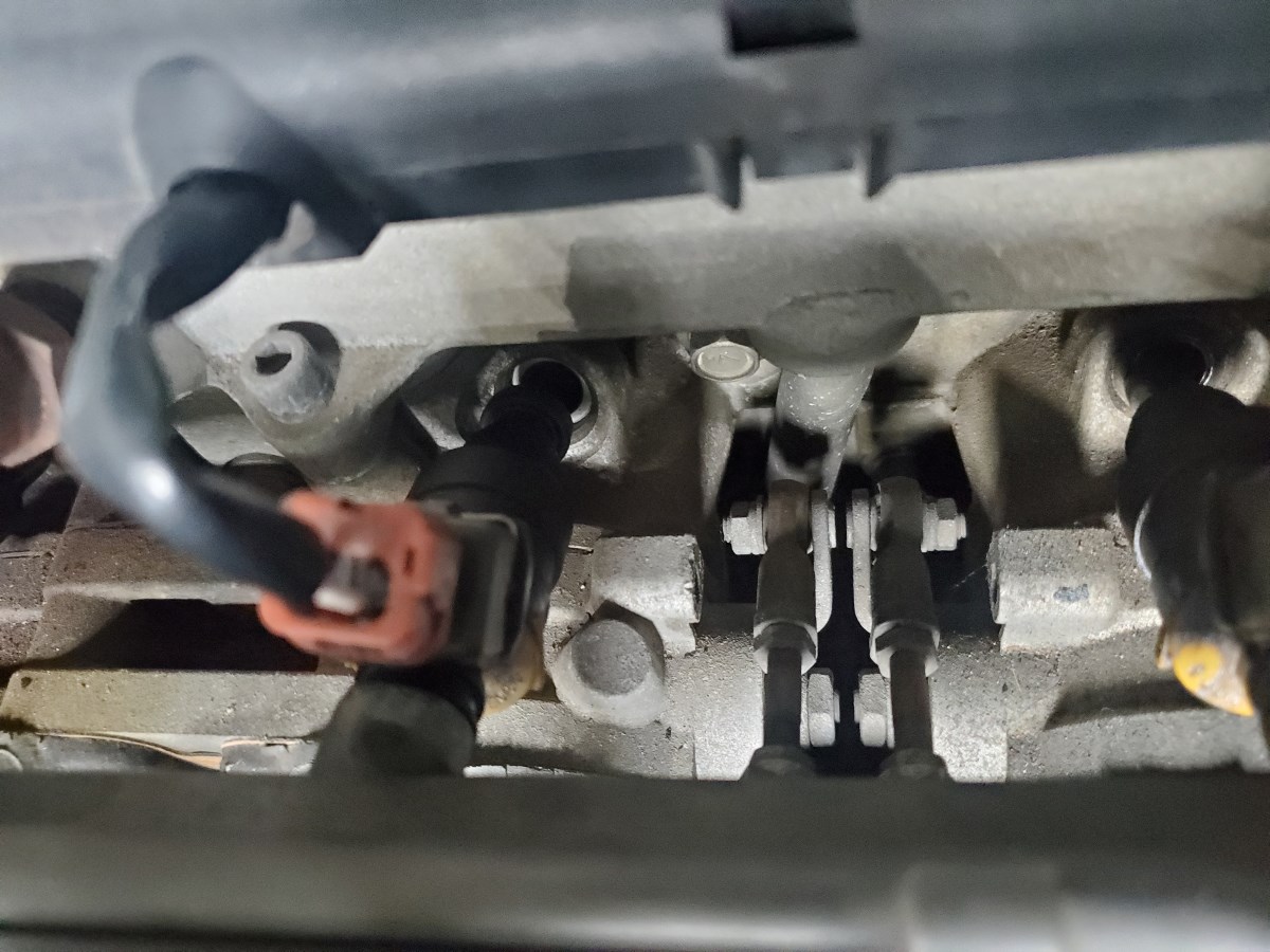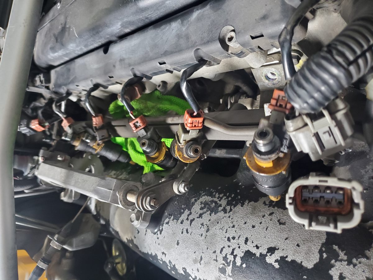 Ensure all six injectors are seated properly before you bolt the fuel rail back down. Do not forget the additional two connectors at the front and aft of the fuel rail and the hose that you moved out of the way near the middle of fuel rail. Hook your battery backup and let you fuel pump prime for a second before turning to crank, check for leaks.